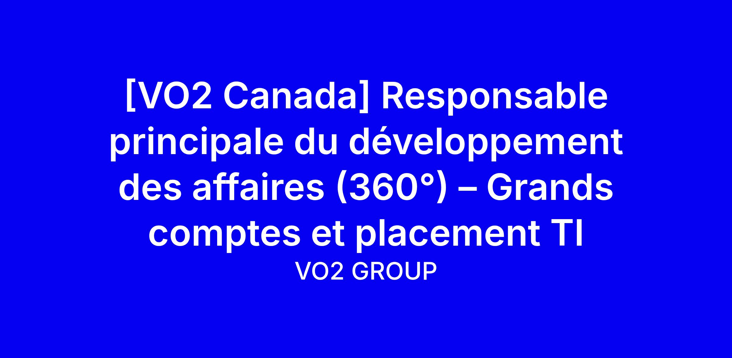 VO2 Group recherche une Responsable du développement des affaires (360°) pour les grands comptes et le placement TI à Montréal. Ce poste s’inscrit dans une démarche intrapreneuriale: 60 % développement et stratégie, 40 % acquisition et recrutement, avec la responsabilité du cycle complet de vente et de dotation jusqu’à la rentabilité. Profil: 5 ans d’expérience en développement des affaires dans le placement TI ou la consultance à Montréal, réseau local actif et double compétence en vente B2B et recrutement technique, bilingue FR et EN. Avantages: base compétitive plus commissions non plafonnées, autonomie, télétravail partiel, assurances, RRSP, OPUS, matériel, formations. Pour postuler envoyez CV et lettre de motivation démontrant vos réussites locales et votre capacité à ouvrir des portes stratégiques et dénicher les talents.