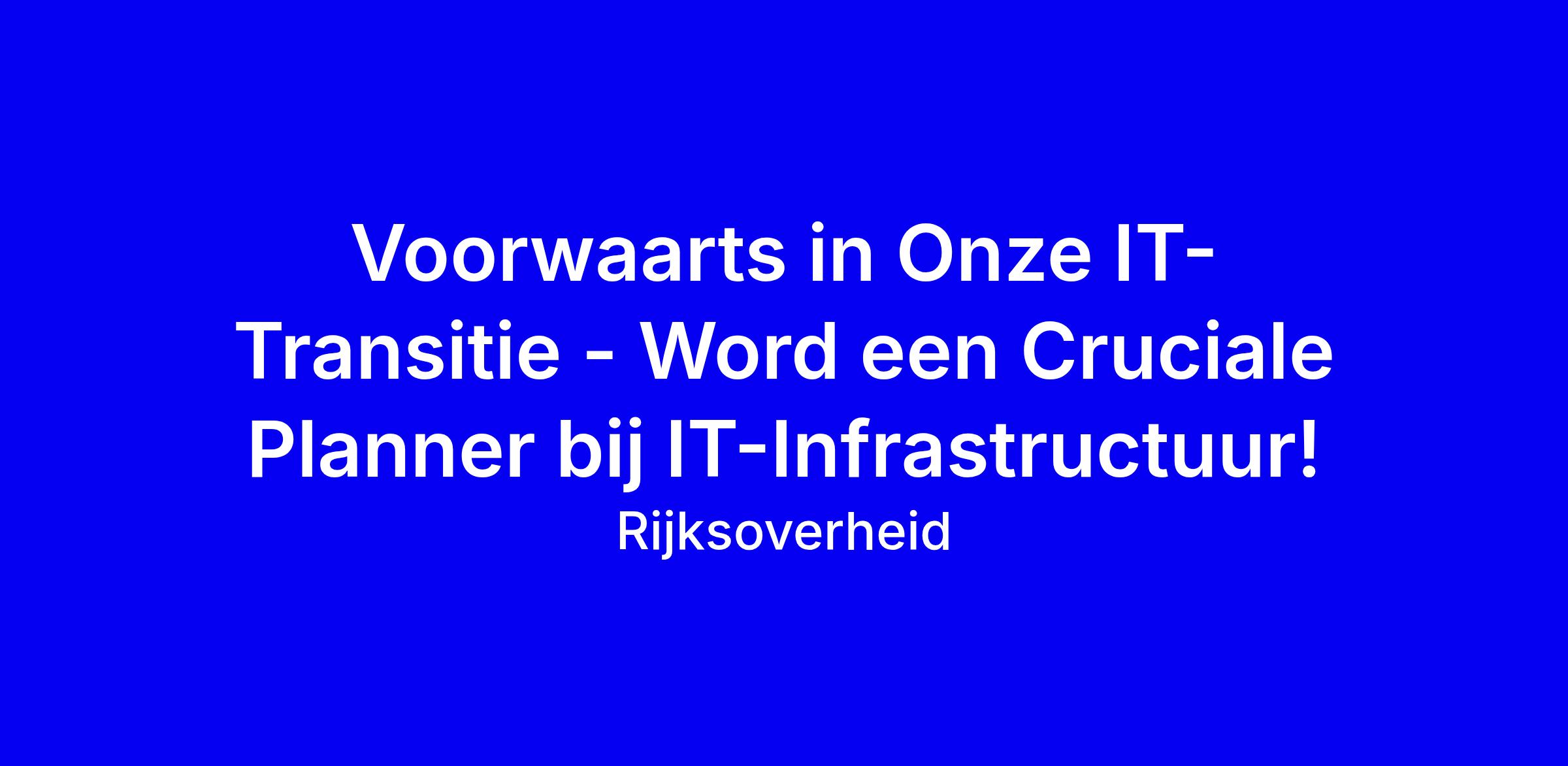IT-Infra maakt een transitie naar aanbod gestuurd werken en operational excellence. Daarom zijn we op zoek naar iemand die beschikt over: