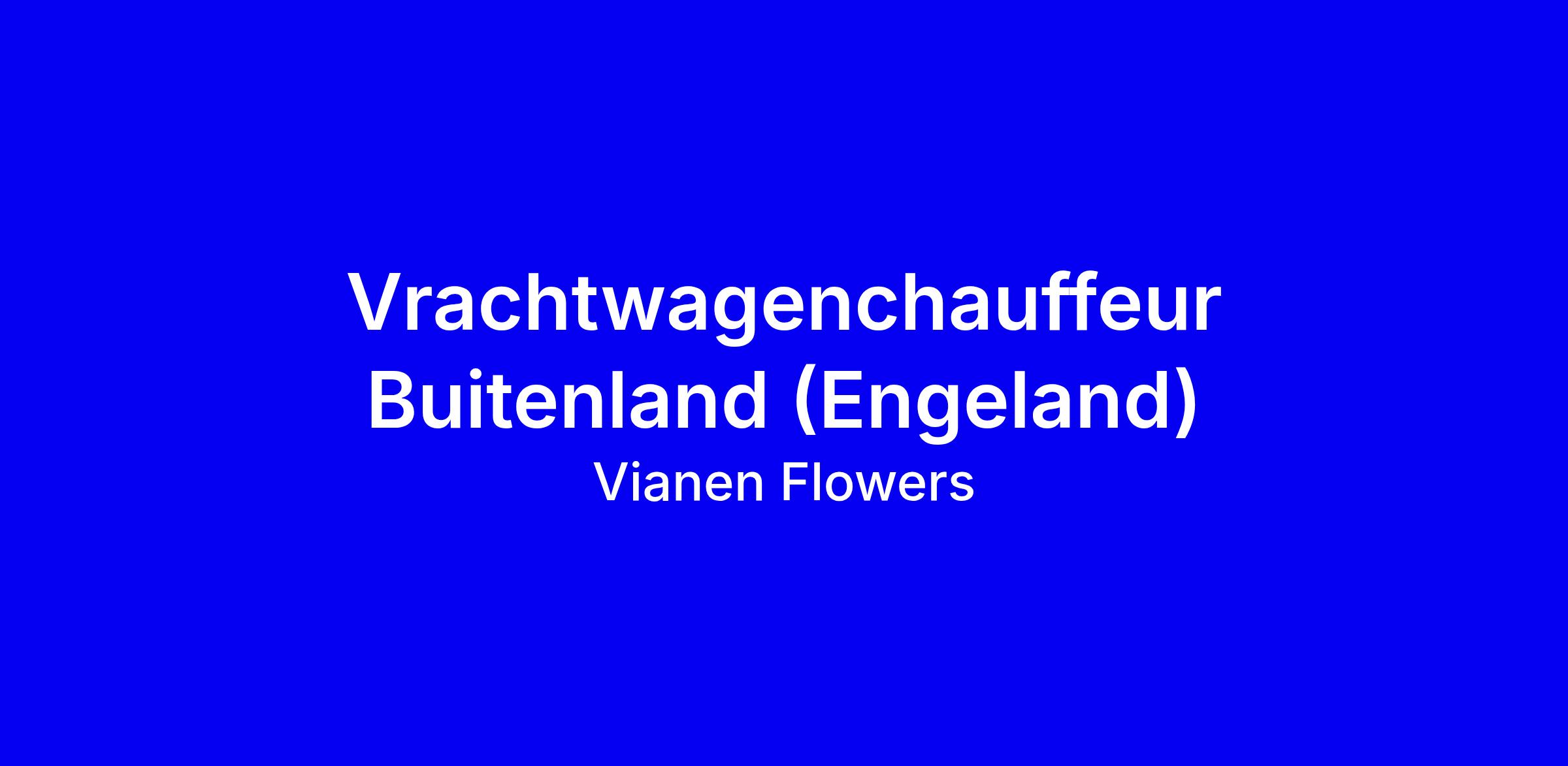 Bij Vianen Flowers draait alles om meer dan alleen bloemen. Als groothandel leveren we dagelijks een breed assortiment aan klanten in de regio Londen. Om onze logistiek verder te versterken, zoeken we een chauffeur die niet alleen graag op de weg zit, maar ook houdt van afwisseling, zelfstandigheid en direct klantcontact. Bestemmingen: Engeland (regio Londen)