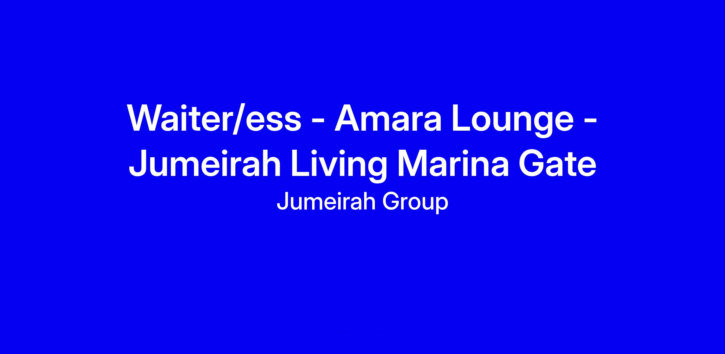 An exciting opportunity has arisen for a Waiter/ess to join Amara Lounge team in Jumeirah Living Marina Gate. The main duties and responsibilities of this role: