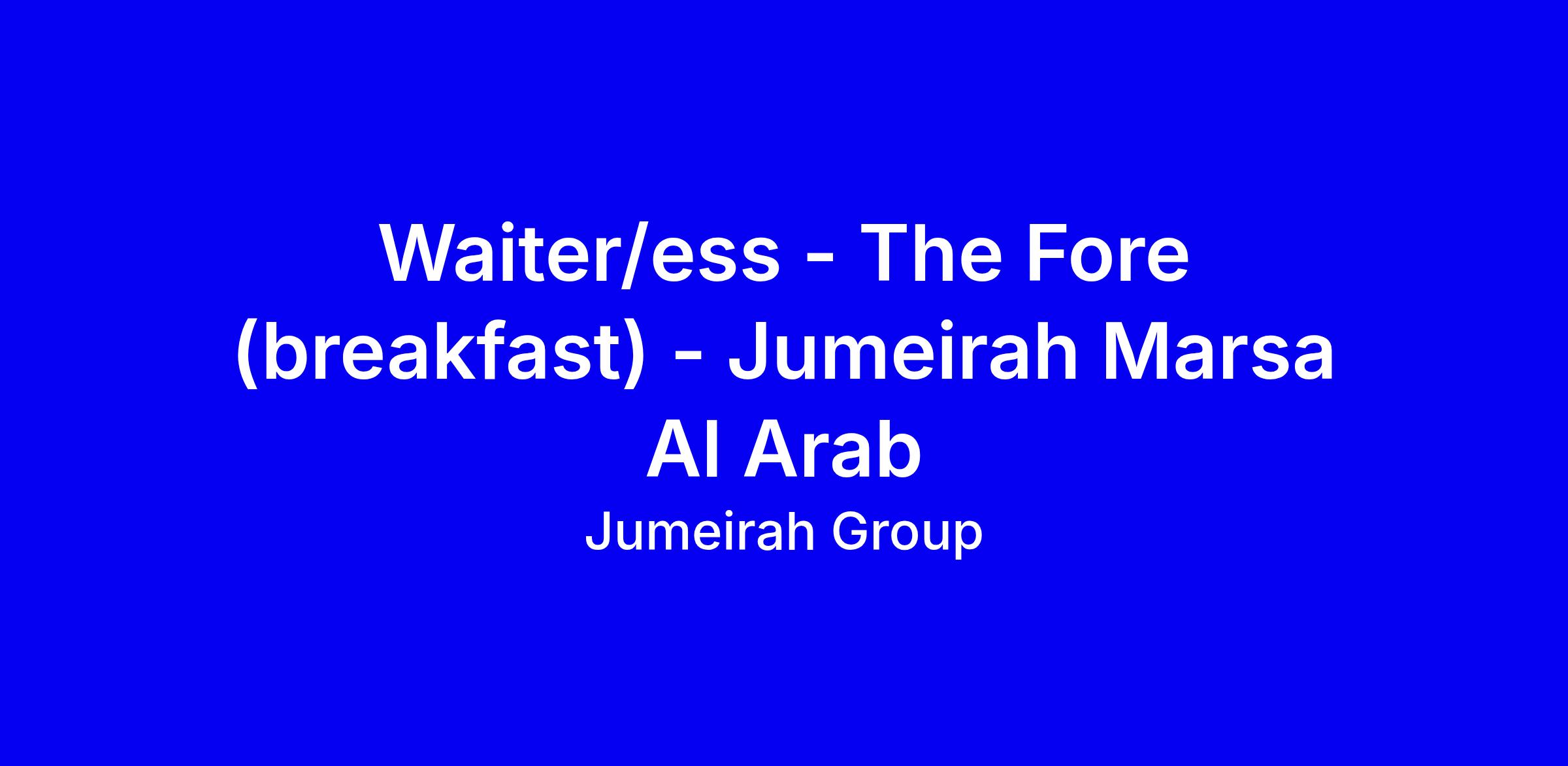 An exciting opportunity has arisen for a Waiter / Waitress to join Jumeirah Marsa Al Arab.