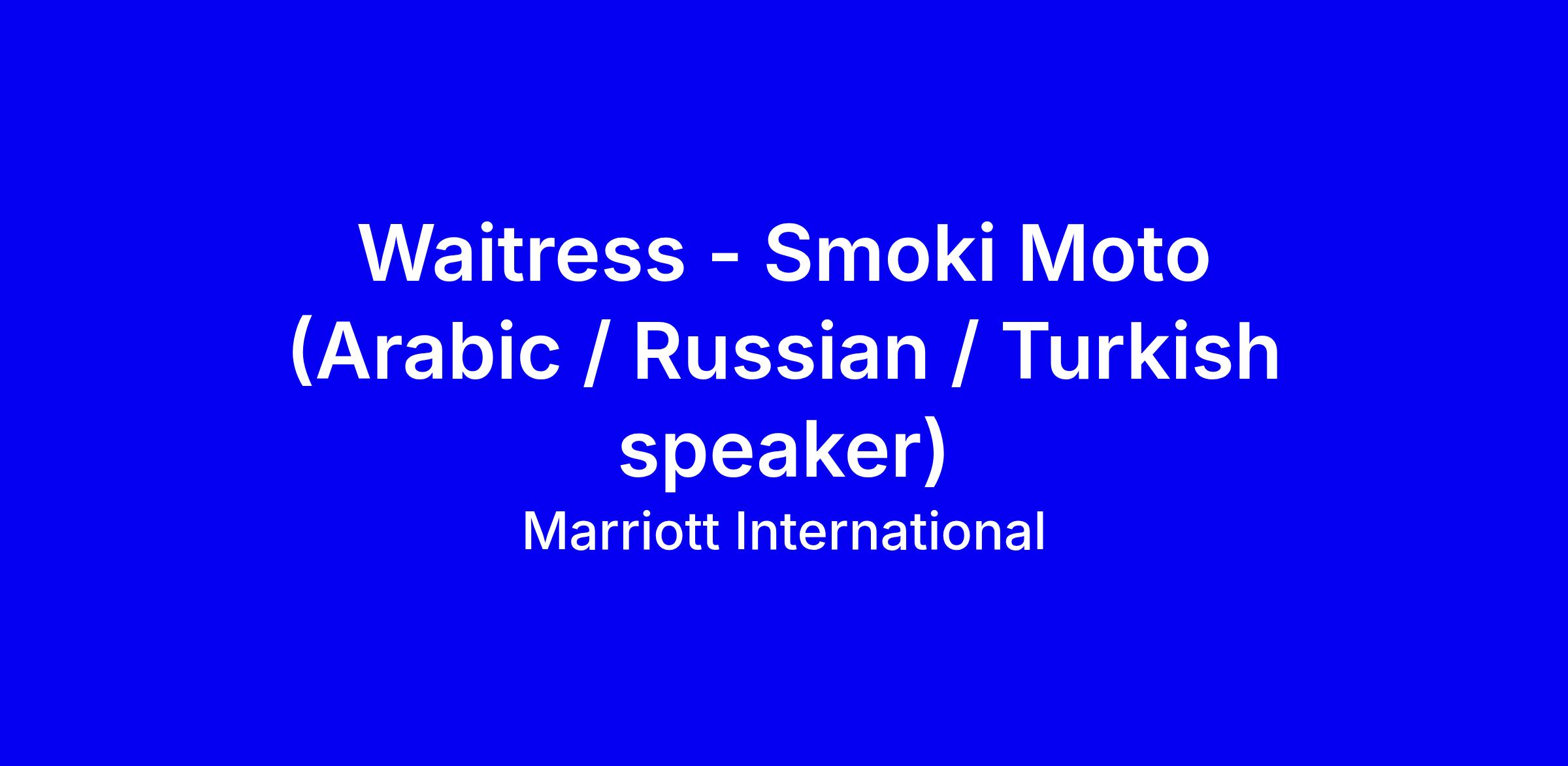 Marriott is hiring a full-time Waitress for Smoki Moto in Dubai, seeking a Guest Service Expert who can set tables, communicate with the kitchen, interact with guests, and maintain a clean, safe work area. The role requires standing and moving for long periods, reading and verifying menu information, and physical tasks such as lifting up to 50 pounds with assistance. Preferred qualifications include a high school diploma and under 1 year related experience; no supervisory experience is needed. Arabic, Russian, or Turkish language skills are valuable in this multicultural, equal opportunity environment. To apply, tailor your resume to hospitality, safety, professionalism, and multilingual service; highlight teamwork and readiness to join immediately.