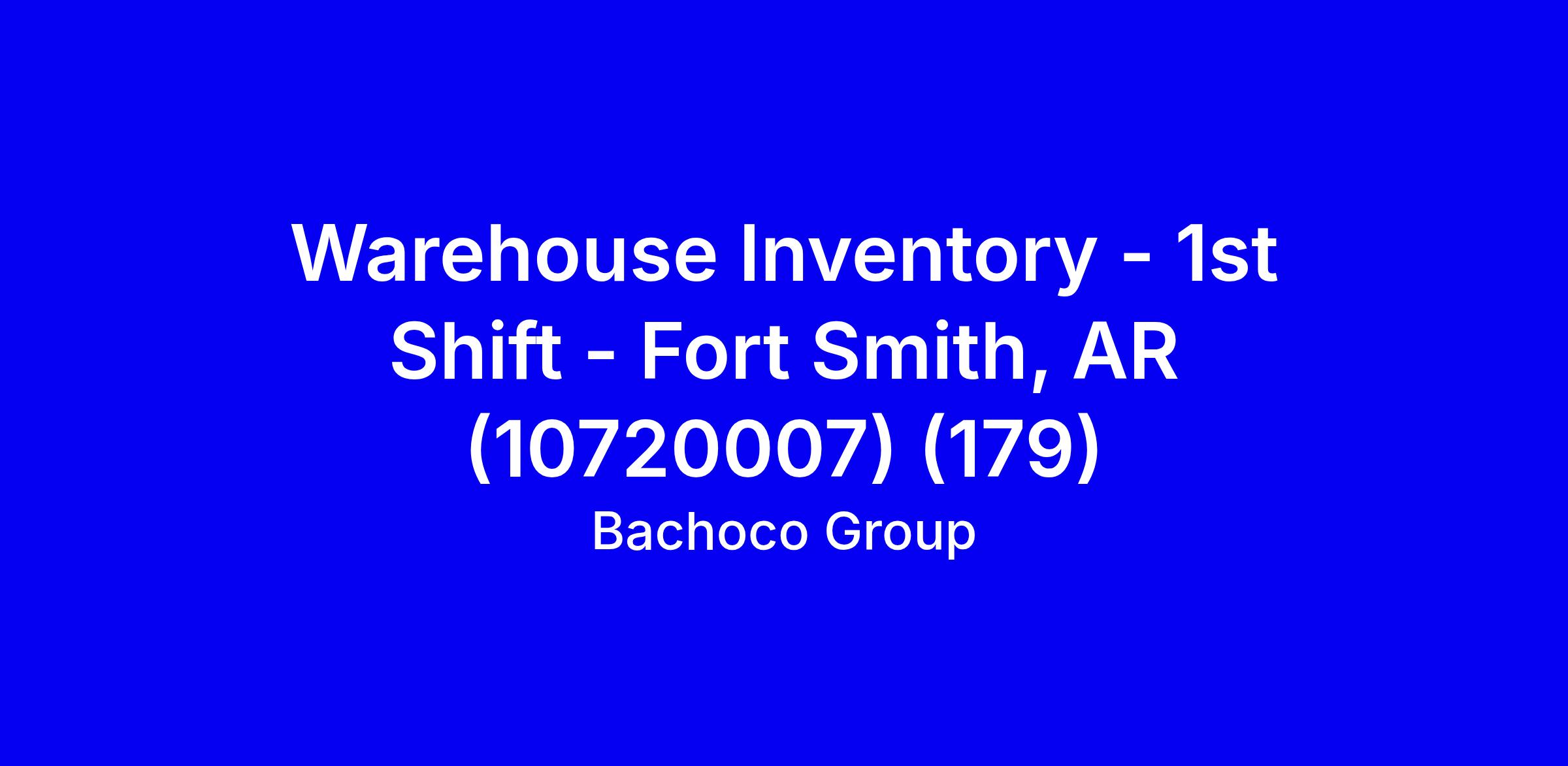 Bachoco Group is hiring a Warehouse Inventory Shipping Clerk for the 1st Shift at the Newlon Warehouse in Fort Smith AR. This role (Dept 179) runs 10:00 AM to 6:30 PM, Monday through Friday with Saturdays as needed, at $16.50 per hour. Benefits include 401K, medical, dental, vision, a $1 per hour weekly attendance incentive, raises at 30 and 90 days, a 30 day shadowing program, six paid holidays, vacation after 90 days, and two personal days after 90 days. Responsibilities include verifying products, inspecting STOs and transfers, updating inventory in SAP WM, processing returns, and maintaining records. No supervisory duties. To apply, highlight inventory control experience, SAP WM familiarity, reliability, safety, and shift flexibility.