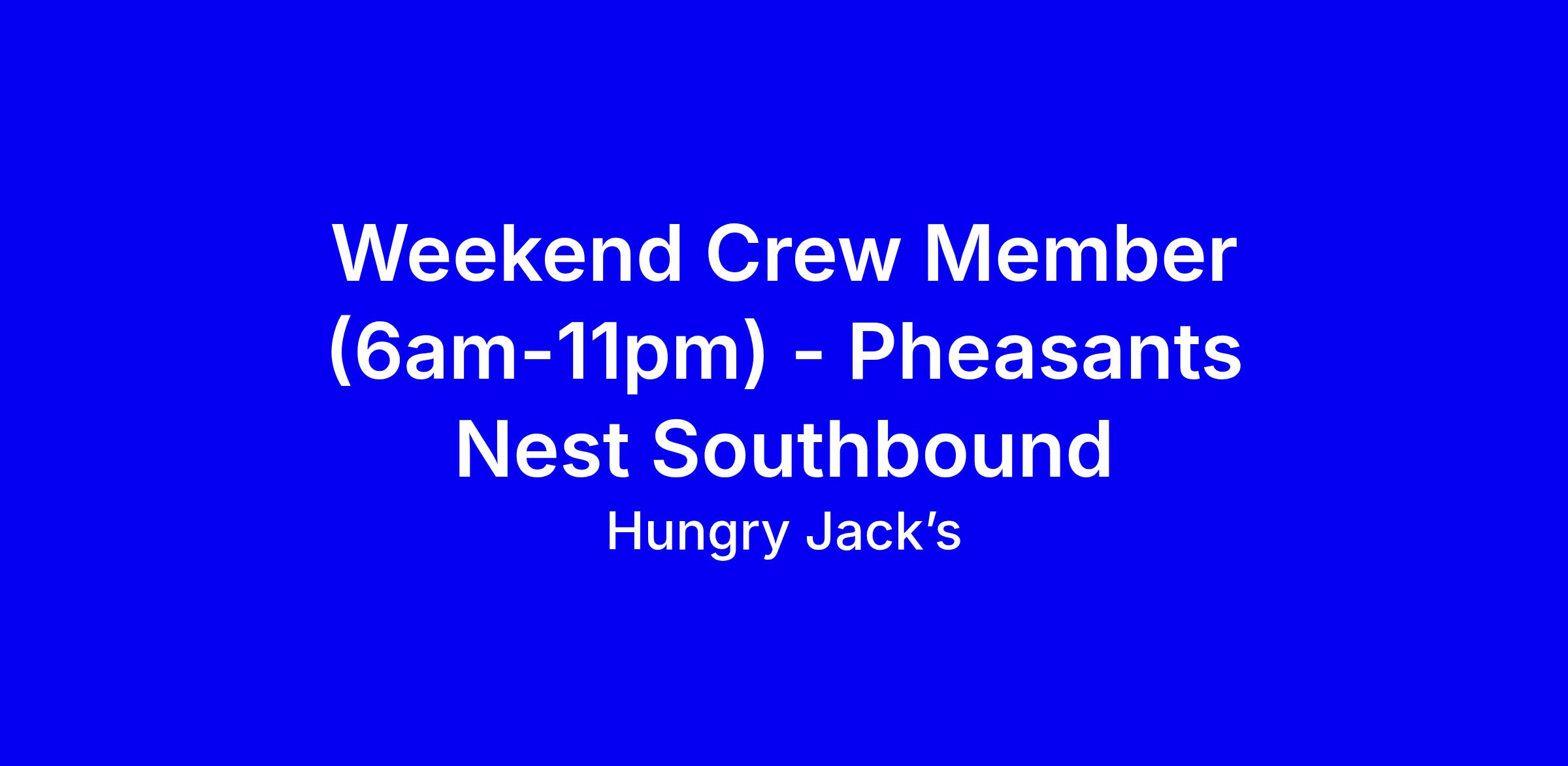 Hungry Jack's Pheasants Nest Southbound is hiring a full-time Weekend Crew Member (6am-11pm) to join the onsite team, with a focus on serving guests and helping to make the famous Better Burgers. The role offers on-the-job training, competitive wages and entitlements, flexible shifts to suit your lifestyle, personal development opportunities, and access to Jackpot staff discounts plus chances to complete nationally accredited retail qualifications. Hungry Jack's is committed to a diverse and inclusive workplace, and many crew members move into management or support roles, so bring your energy, team spirit, and customer service mindset. To apply, highlight your reliability, weekend availability, and eagerness to learn, tailor your resume to show quick learning and a positive attitude, and apply now.