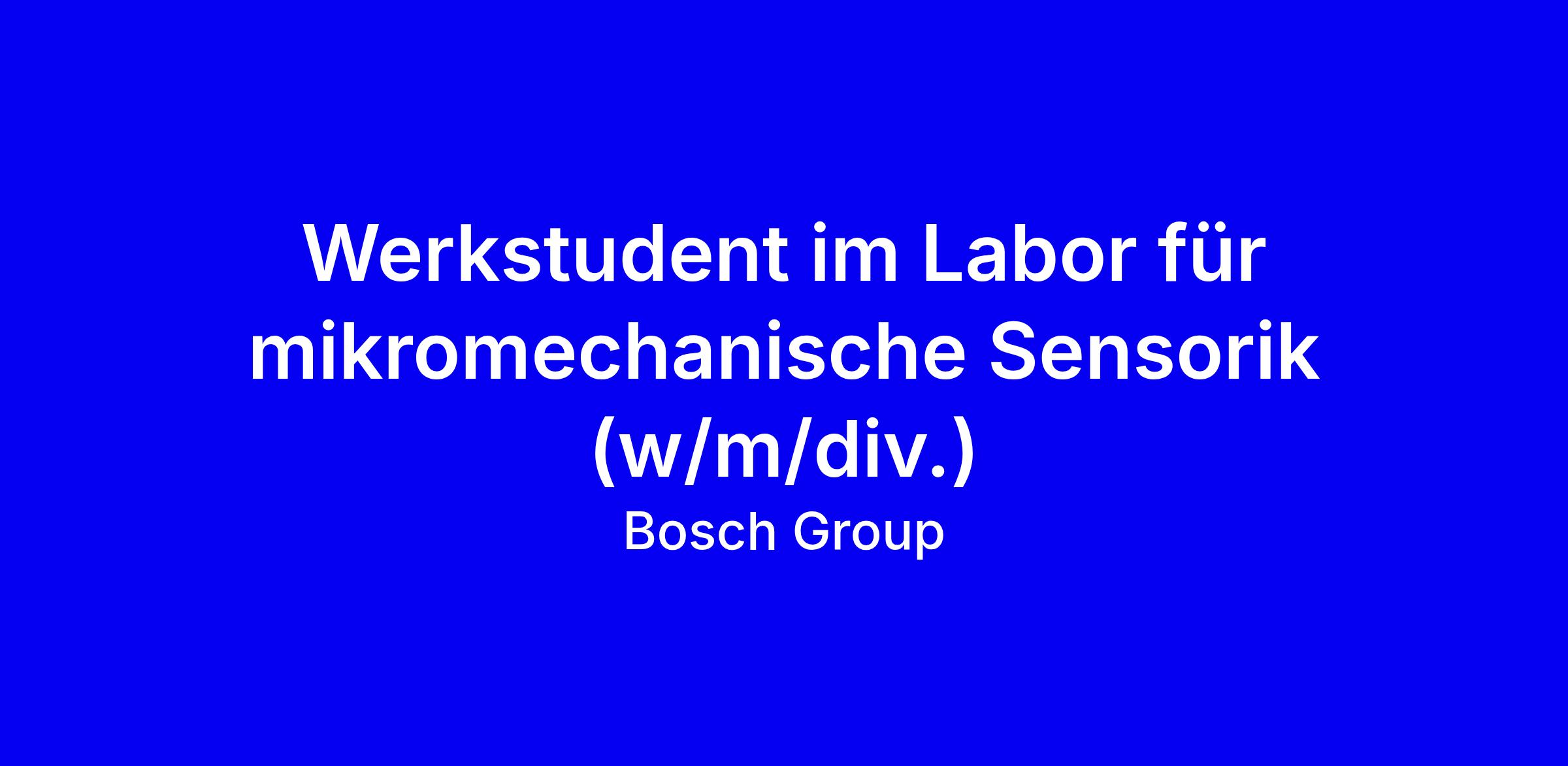 Die Bosch Sensortec GmbH in Reutlingen sucht einen Werkstudenten im Labor für mikromechanische Sensorik (w/m/div.) zur Unterstützung in der Entwicklung und experimentellen Arbeit. Die Position umfasst 12 Monate bei ca. 10 Stunden pro Woche onsite, Einblick in interne Prozesse, eigenständige Umsetzung erlernter Methoden, Unterstützung bei der Charakterisierung von Sensoren, Planung und Durchführung von Versuchen sowie Vorbereitung, Start und Betreuung von Messungen und die Auswertung von Messdaten. Gesucht werden Studierende der Naturwissenschaften oder Technik mit Grundkenntnissen in Messtechnik und Elektronik, Python, idealerweise Lötkenntnisse und sicherem Umgang mit Excel; Laborerfahrung von Vorteil. Führerschein Klasse B vorteilhaft. Bewerbungsunterlagen: Lebenslauf, Notenspiegel, Immatrikulationsbescheinigung, ggf Arbeits- und Aufenthaltserlaubnis. Betonen Sie in der Bewerbung Ihre schnelle Auffassungsgabe und Zuverlässigkeit.