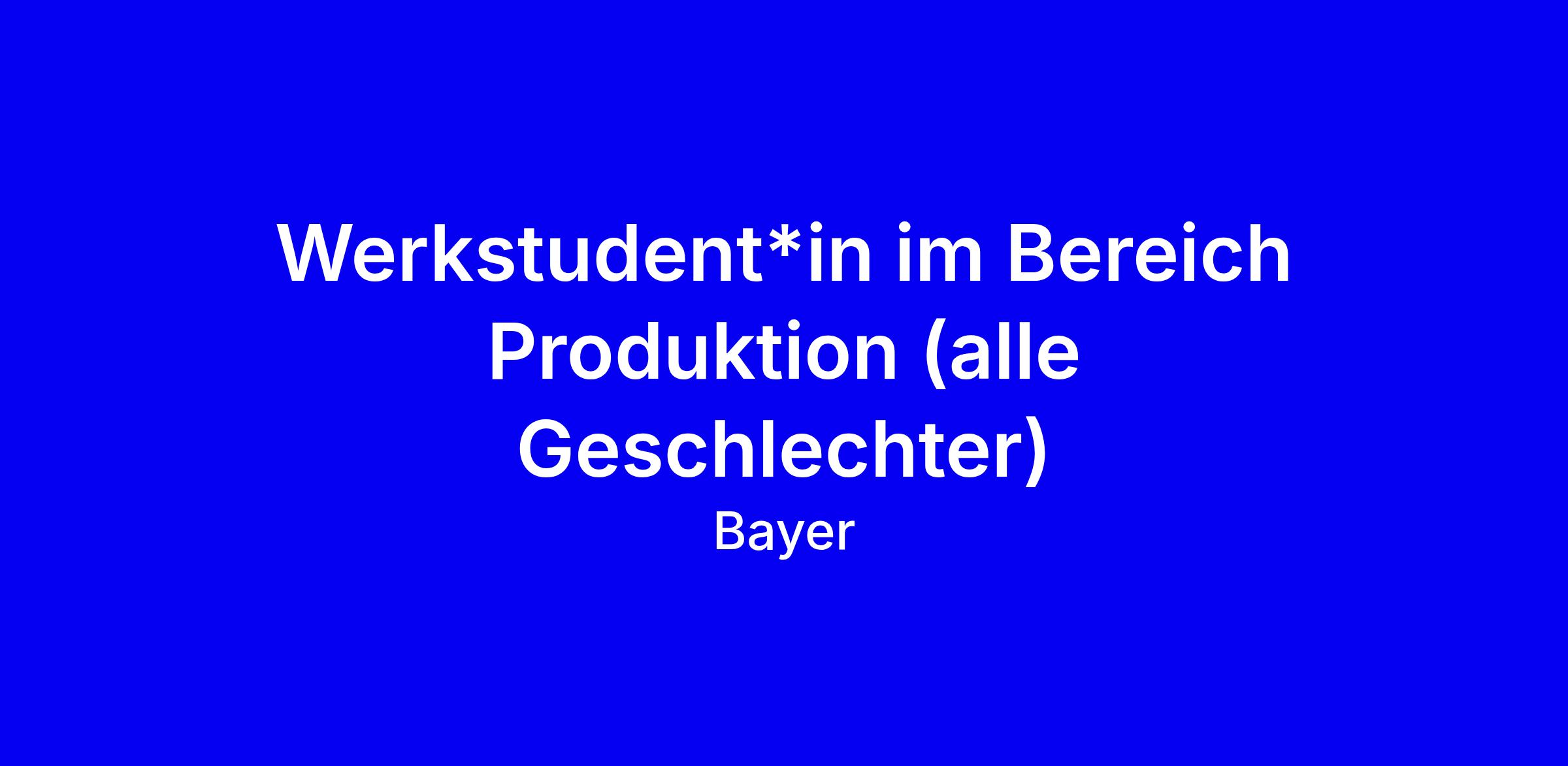 Werkstudent*in im Bereich Produktion (alle Geschlechter)
