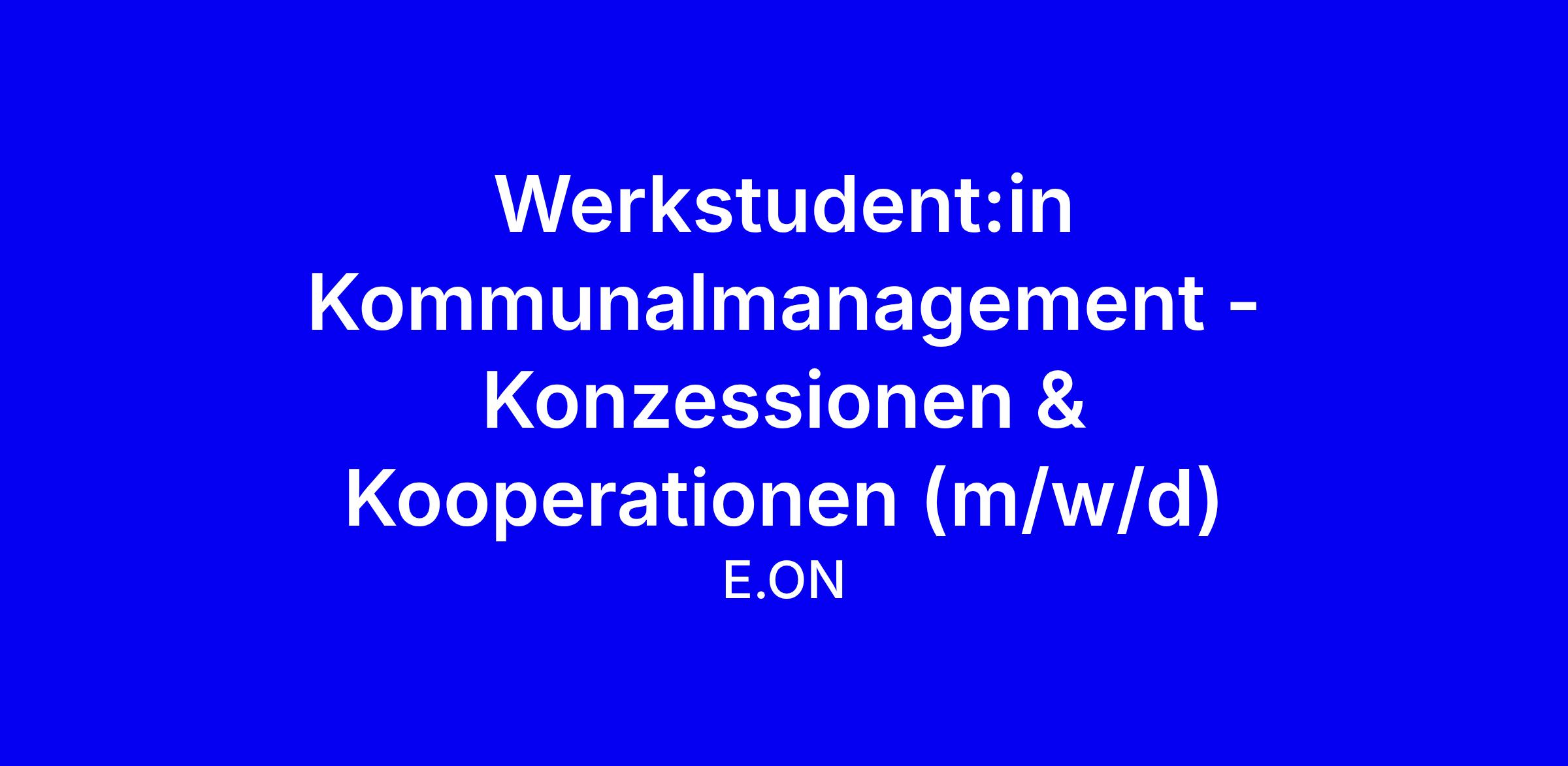 Die ausgeschriebene Position als Werkstudent:in Kommunalmanagement mit Schwerpunkt Konzessionen & Kooperationen bei Bayernwerk Netz GmbH (E.ON) in Regensburg bietet die Chance, an Konzessionsverfahren und Kooperationsmodellen mitzuwirken, Unterlagen in Excel, Word und PowerPoint aufzubereiten und Einblicke in energiewirtschaftliche Fragestellungen zu gewinnen. Du unterstützt die Dokumentenpflege und arbeitest bereichsübergreifend mit Fachabteilungen. Voraussetzung sind ein wirtschafts- oder rechtsnaher Studiengang (BWL, Rechtswissenschaften o Ä), sichere MS Office Kenntnisse, sowie eine sorgfältige und eigenständige Arbeitsweise und Interesse an der Energiewirtschaft. Wichtig ist: Studium, 20 Std./Woche im Semester, bis 37 Std./Woche vorlesungsfreie Zeit; bewirb dich online bis 04.03.2026. Nutze das Netzwerk, die Onboarding-Programme und die offene Kultur.