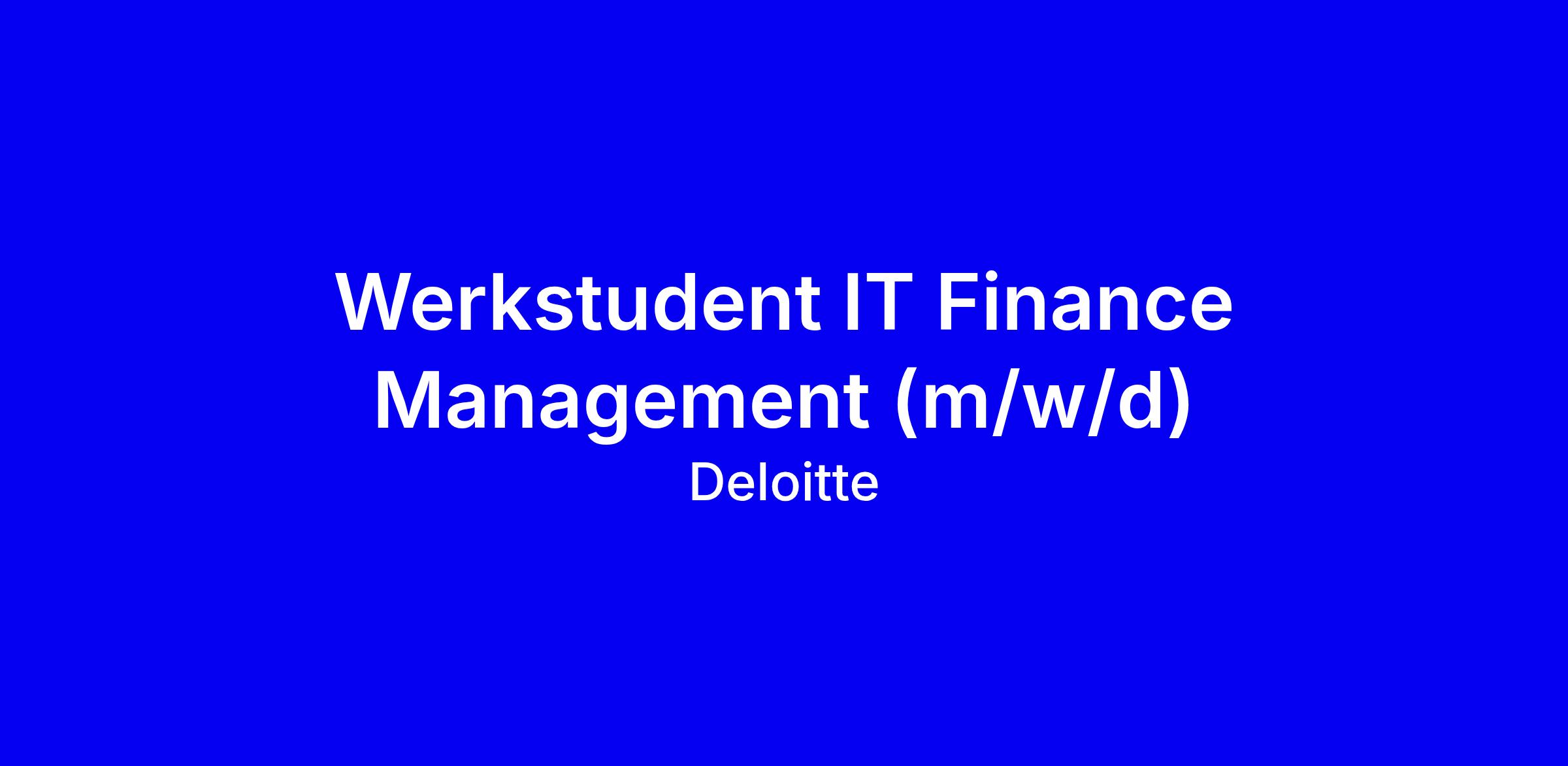 Als Werkstudent IT Finance Management (m/w/d) unterstützt du Deloitte bei der Vorbereitung und Durchführung anspruchsvoller Tätigkeiten im Bereich DTech Finance Management - und trägst so zum nachhaltigen Kostenmonitoring bei.