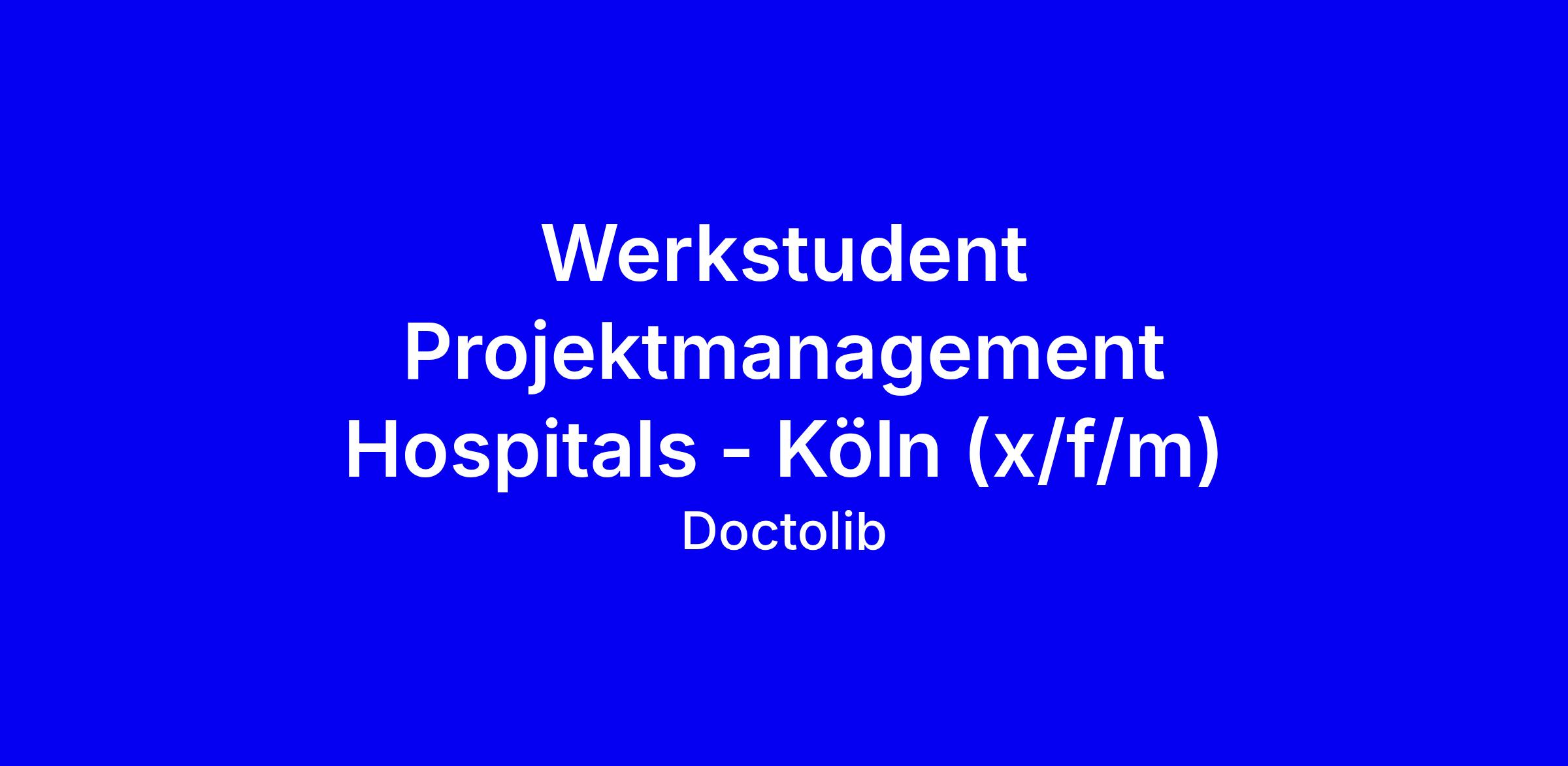 Doctolib sucht Dich ab April als Werkstudent:in im Bereich Projektmanagement für Krankenhäuser für unseren Standort in Köln.