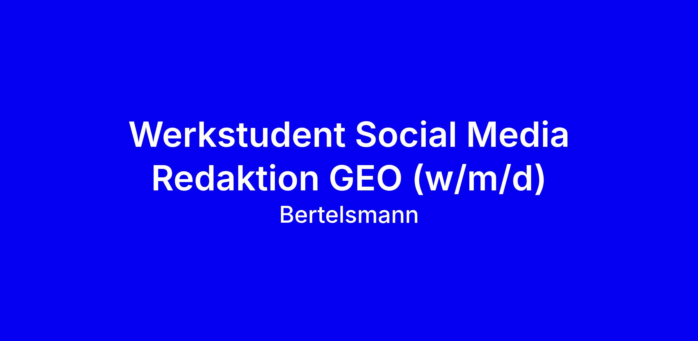 Werde Teil von RTL! Mit dem Versprechen, „die Welt mit anderen Augen sehen“, erreicht GEO als crossmediale Medienmarke heute Menschen aller Altersgruppen. Bei uns findest du eine offene und freundliche Arbeitsatmosphäre, in der wir gemeinsam an spannenden Projekten arbeiten und uns gegenseitig unterstützen. Unsere Vielfalt ist unser Erfolgsrezept: Wir freuen uns darauf, dich kennenzulernen und dich in unserem Team willkommen zu heißen. Die Redaktion besteht aus rund 50 Mitarbeitenden; dein Einsatzort ist Hamburg.