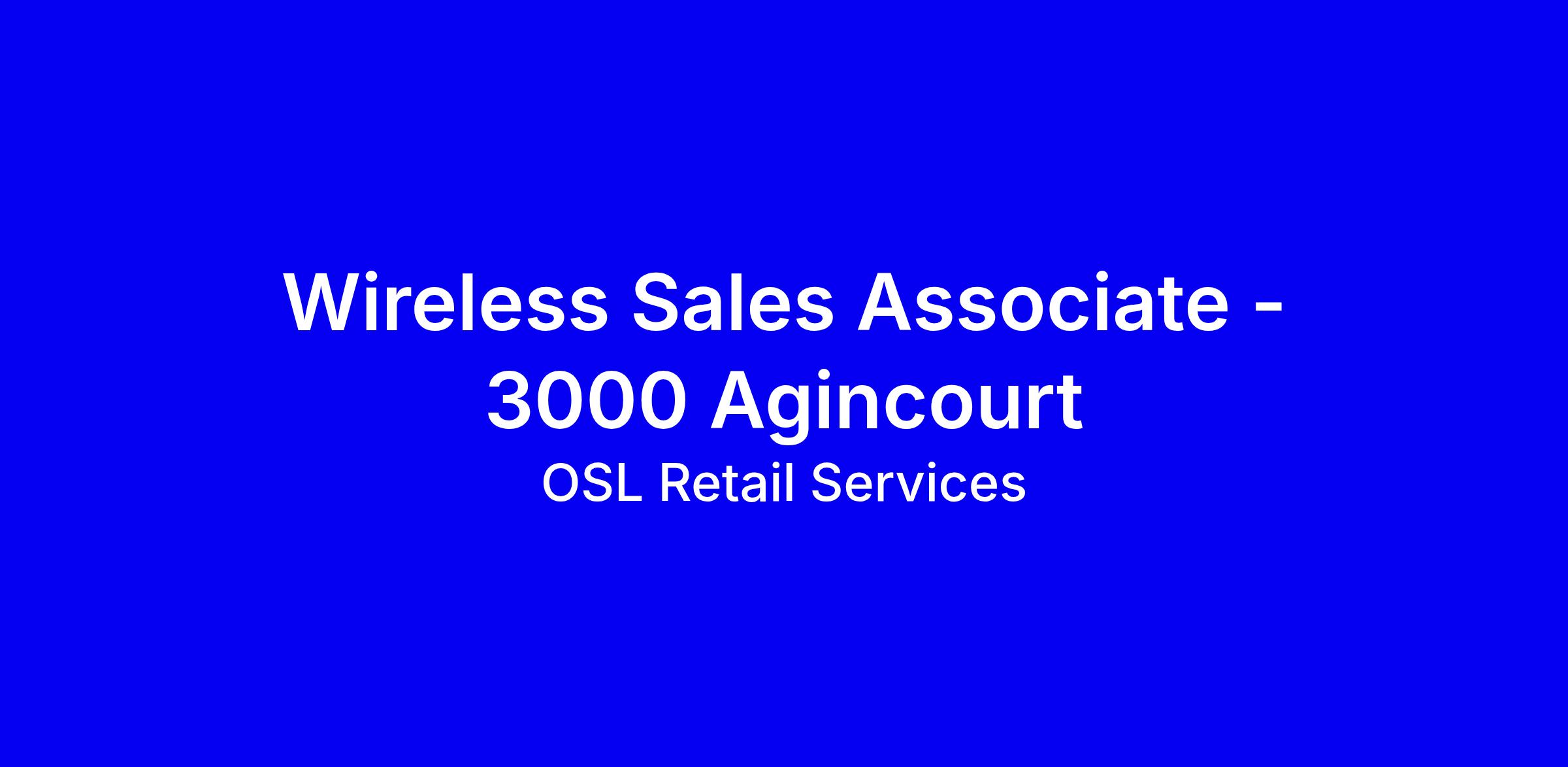 Wireless Sales Associate | Full-Time | 30000 Agincourt, ON