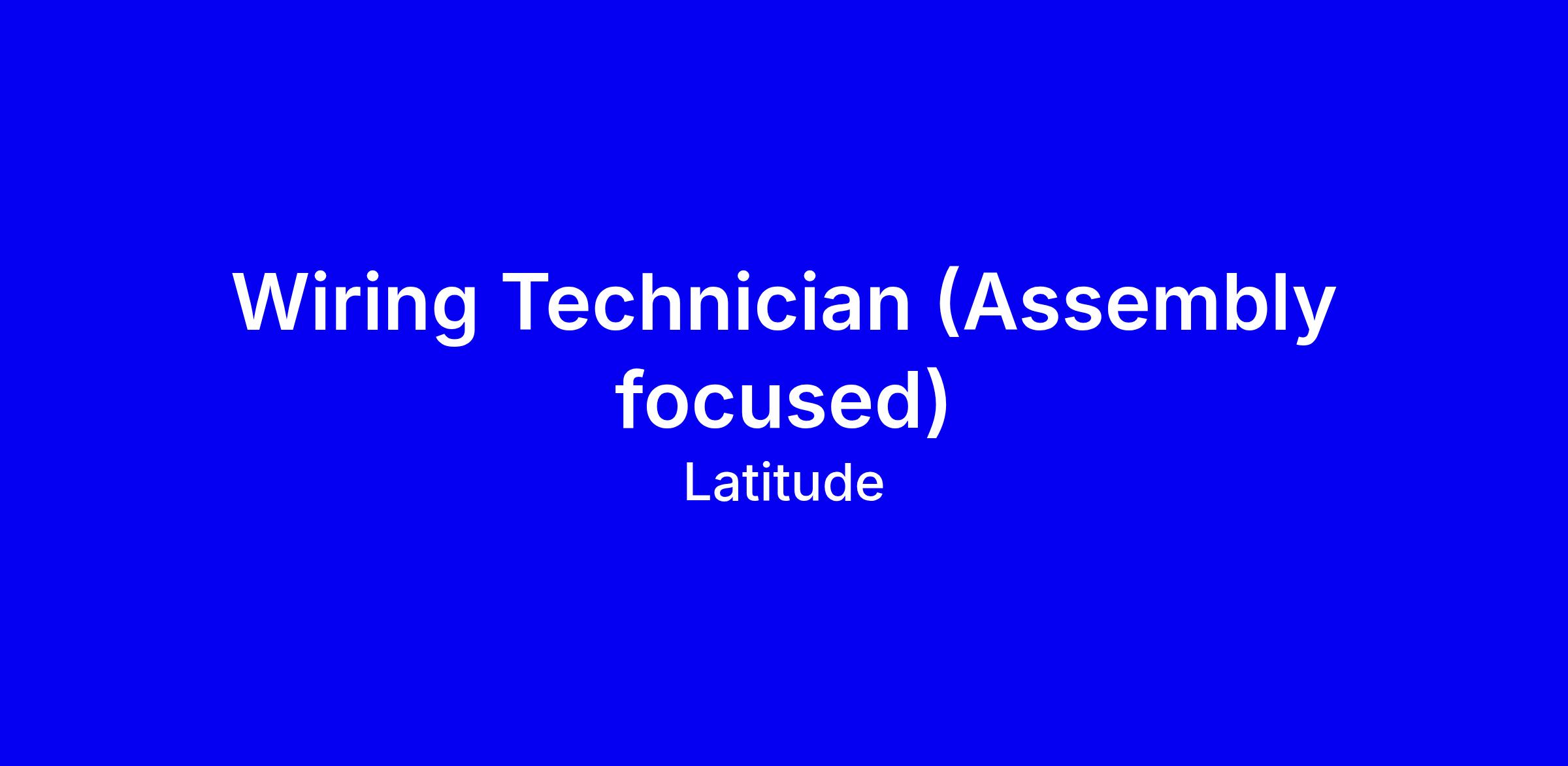 Wiring Technician (Assembly focused) at Latitude is a full-time onsite role in Chester, ENG that supports production in the electromechanical assembly of specialized industrial equipment. The job covers cables, wiring, lamp housings, testing, and documentation, with a focus on following product specs and blueprints. Ideal candidates have a high school diploma and at least two years of relevant manufacturing experience, with electronics training or an associate degree preferred. You should demonstrate hands-on skills in cutting, terminating, soldering, crimping, and wiring, plus tool proficiency, attention to detail, and the ability to lift up to 30 pounds and work at elevated heights. To apply, tailor your resume to show wiring and testing, emphasize safety and documentation, and highlight collaboration across teams.