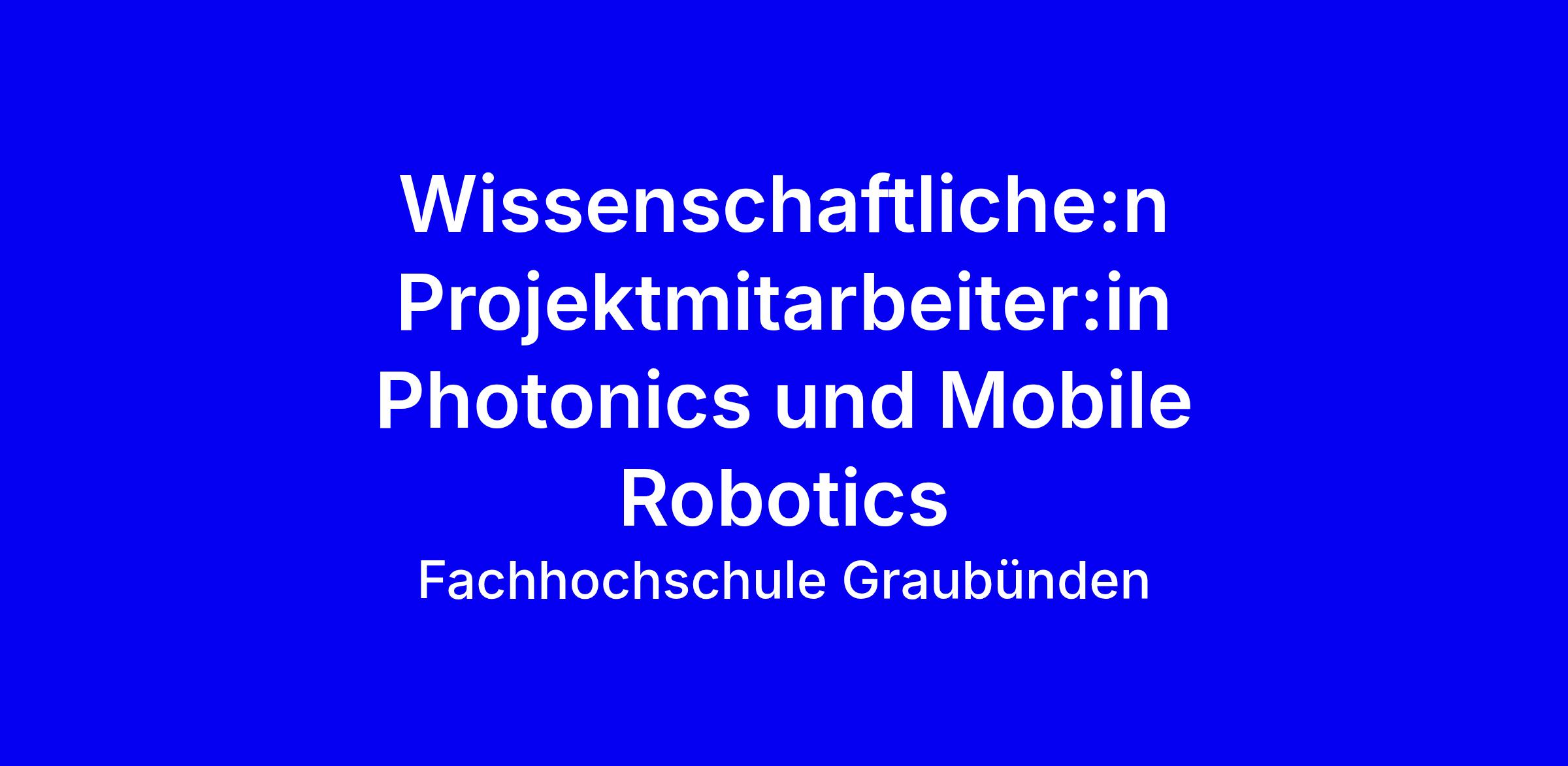 Die FH Graubünden sucht eine:n Wissenschaftliche:n Projektmitarbeiter:in Photonics und Mobile Robotics am Institut für Photonics und Robotics in Chur, 80 bis 100 %, befristet auf drei Jahre mit Verlängerungsoption, vor Ort. Sie arbeiten an angewandten Forschungs- und Dienstleistungsprojekten, unterstützen Dozierende bei Laborversuchen und im Unterricht der Bachelormodule Photonics und Mobile Robotics und stärken die Brücke zwischen Forschung und Lehre. Voraussetzungen: Hochschulabschluss in Photonics, Robotik, Maschinenbau, Elektrotechnik, Informatik, Systemtechnik, Mechatronik oder verwandten Bereichen sowie Kenntnisse in Softwareentwicklung, Elektronik, Optik, Produktentwicklung, Mechanik oder Systemintegration; flexibel, teamorientiert und Freude an der Zusammenarbeit mit Studierenden. Wir bieten ein dynamisches Team, spannende Projekte mit Hochschulpartnern, die Möglichkeit zur berufsbegleitenden Master-Weiterbildung und attraktive Anstellungsbedingungen. Online bewerben, Fragen an Prof. Dr. Hannes Merbold. Tipps: Passen Sie den Lebenslauf gezielt an Photonics und Mobile Robotics an, betonen Sie Labor- und Lehr-Erfahrung, zeigen Sie Teamfähigkeit und Lernbereitschaft.