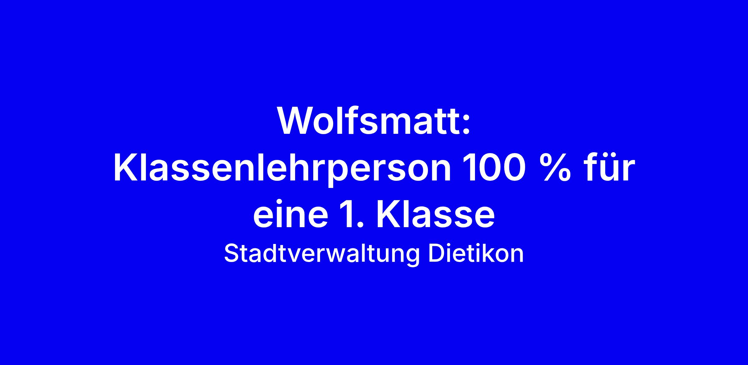Die Stadt Dietikon sucht ab dem 01.08.2026 eine 100 % Klassenlehrperson für die 1. Klasse in der Schuleinheit Wolfsmatt. Zu Ihren Aufgaben gehören Klassenführung (22 WL), Unterrichtsvorbereitung und -nachbereitung, enge Zusammenarbeit im Stufenteam sowie Mitgestaltung schulischer Projekte und aktive Teilhabe am Schulteam. Gefordert ist ein Schweizer Lehrdiplom oder ein EDK-anerkanntes Diplom für diese Stufe, Flexibilität, Kooperationsbereitschaft und Humor sowie Freude an Heterogenität und einem multikulturellen Umfeld; ideal ist eine Lehrbefähigung im Fach Sport. Wir bieten ein dynamisches Team, gute Einarbeitung, Unterstützung durch Schulleitung und Fachstellen, sowie umfangreiche Weiterbildungen und ein breites digitales Lernumfeld. Bewerbungstipps: Heben Sie Erfahrungen mit der Neuen Autorität nach Haim Omer hervor, betonen Sie Teamfähigkeit, Multikulturalität und sportliche Kompetenzen, senden Sie Unterlagen an Livio Sanseverino, Tel. 044 743 32 85, oder bewerben Sie sich über www.dietikon.ch.