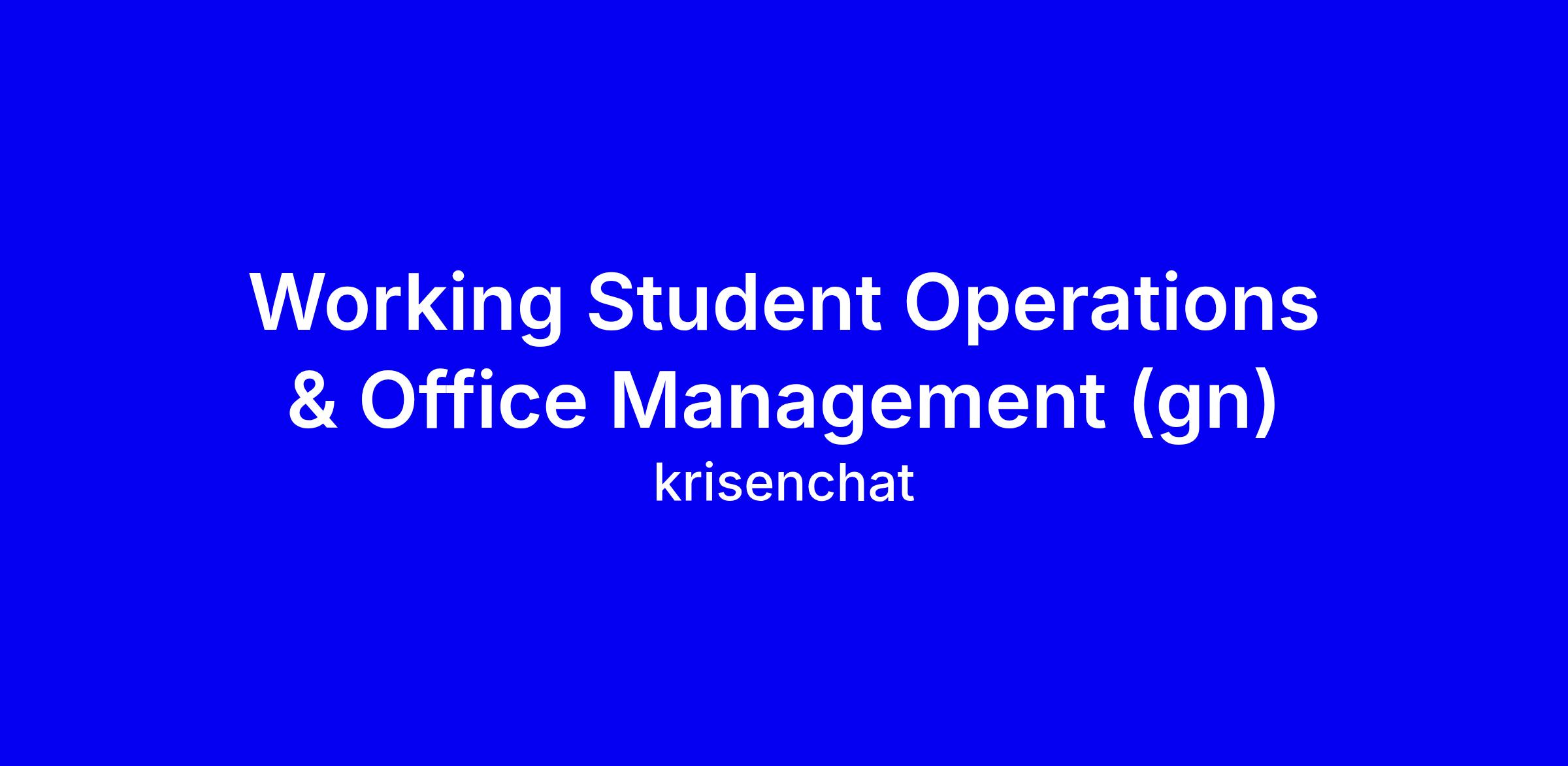 Die Position Working Student Operations & Office Management bei krisenchat ist eine befristete Teilzeitstelle (20 Stunden pro Woche) in Berlin Kreuzberg mit Start am 01. März 2026 im Bereich People Operations. Du sorgst für reibungslose Büroabläufe, unterstützt Admin-Aufgaben, Meetings und das Onboarding, koordinierst IT-Equipments mit externen Partnern und trägst so zum täglichen Betrieb bei. Gesucht wird ein aktueller Student mit mindestens zwei Semestern Rest, Verfügbarkeit an drei Tagen pro Woche vor Ort, sehr gute Deutschkenntnisse (C1) sowie gute Englischkenntnisse, sicherer Umgang mit Google Suite und Slack, sowie eine strukturierte, eigeninitiativ arbeitende Persönlichkeit. Bewirb dich mit CV ohne Foto und aussagekräftigem Motivationsschreiben über das Bewerbungsformular; hebe relevante Beispiele aus Inventur, Listenpflege oder Office-Organisation hervor. Bewerbungsfrist: 15.02.2026.