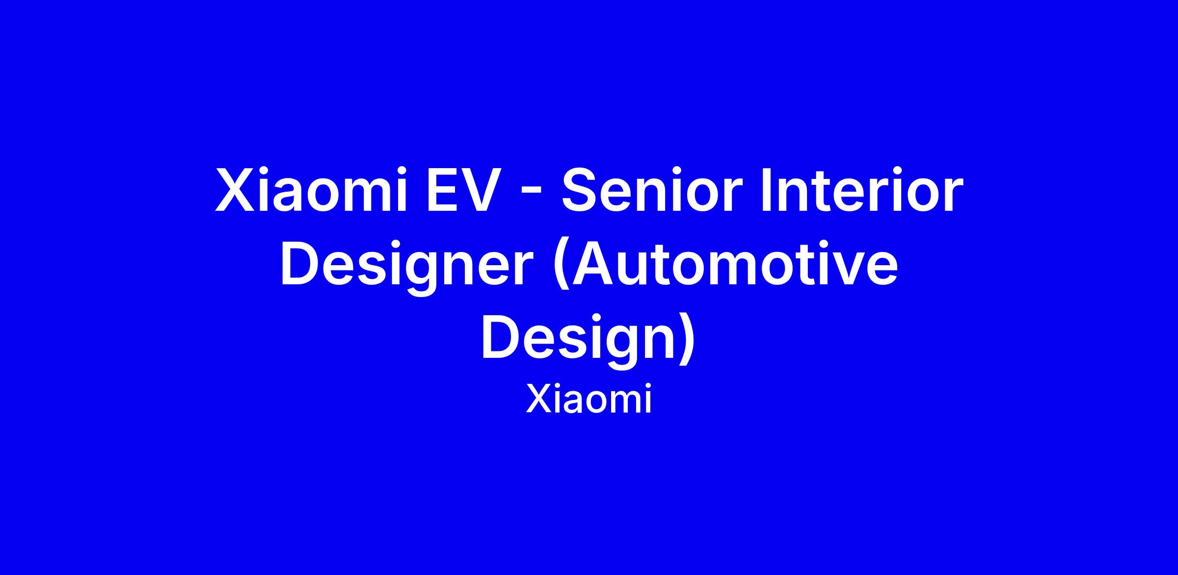 Xiaomi EV - Senior Interior Designer (Automotive Design)慕尼黑社招全职职位 ID:C4030职位描述【Position Summary】