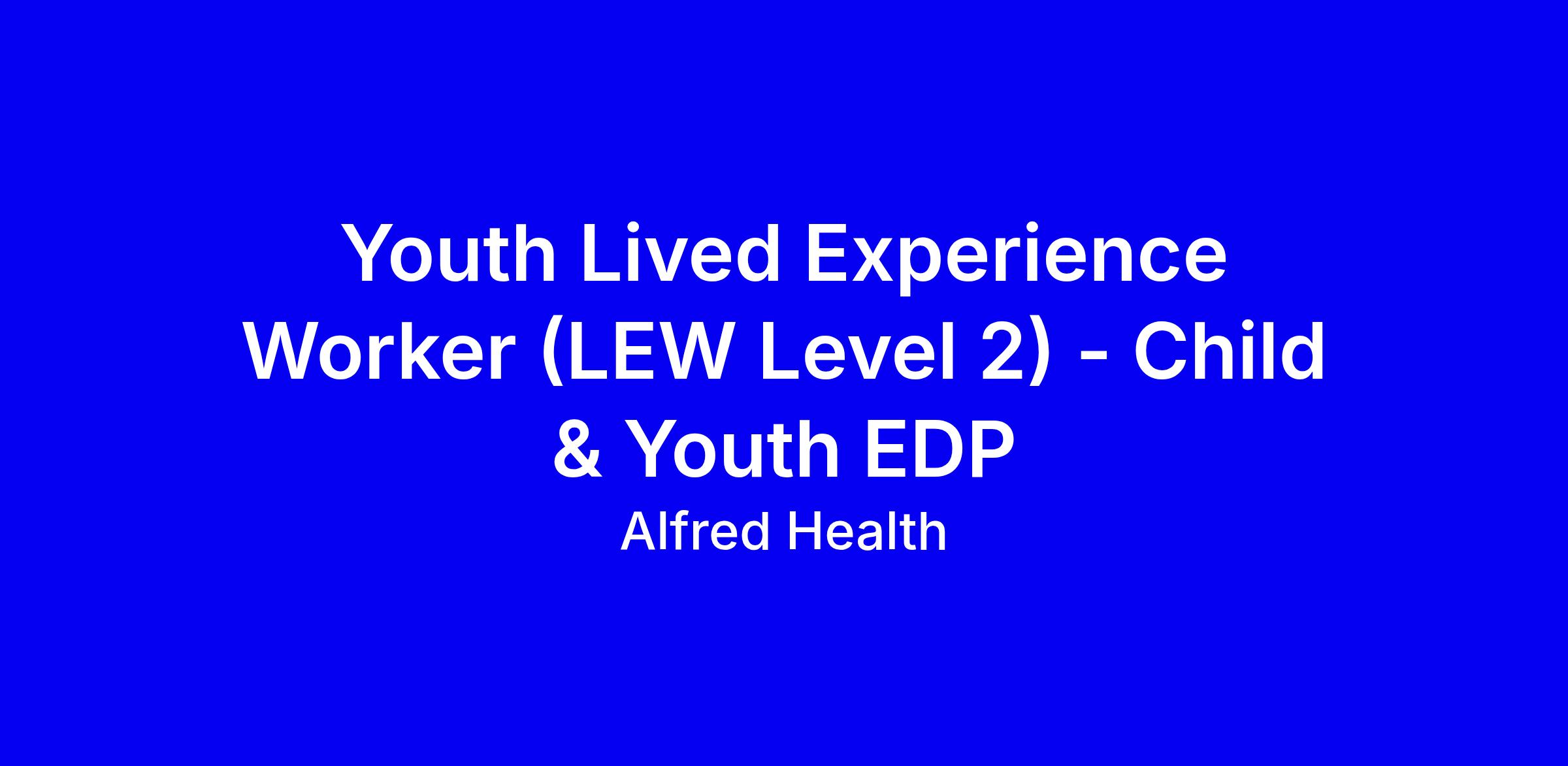 Alfred Health is seeking a Youth Lived Experience Worker Level 2 to join the ICYAMHWS Eating Disorders Program, part time (0.5 EFT) until June 2027, based in Moorabbin with some travel. This role draws on your lived experience of an eating disorder to support young people and ensure their voice informs planning in a multidisciplinary team; you are not a clinician but your insights shape service delivery. Essential criteria include lived experience as a young person with an eating disorder, recovery, Australian working rights, a Victorian driver license, and a current Working with Children Check or willingness to obtain, plus background checks. Apply with a separate cover letter addressing the Key Selection Criteria and your resume by 13 March 2026 11pm AEDT; for more information contact Jessica Anson.
