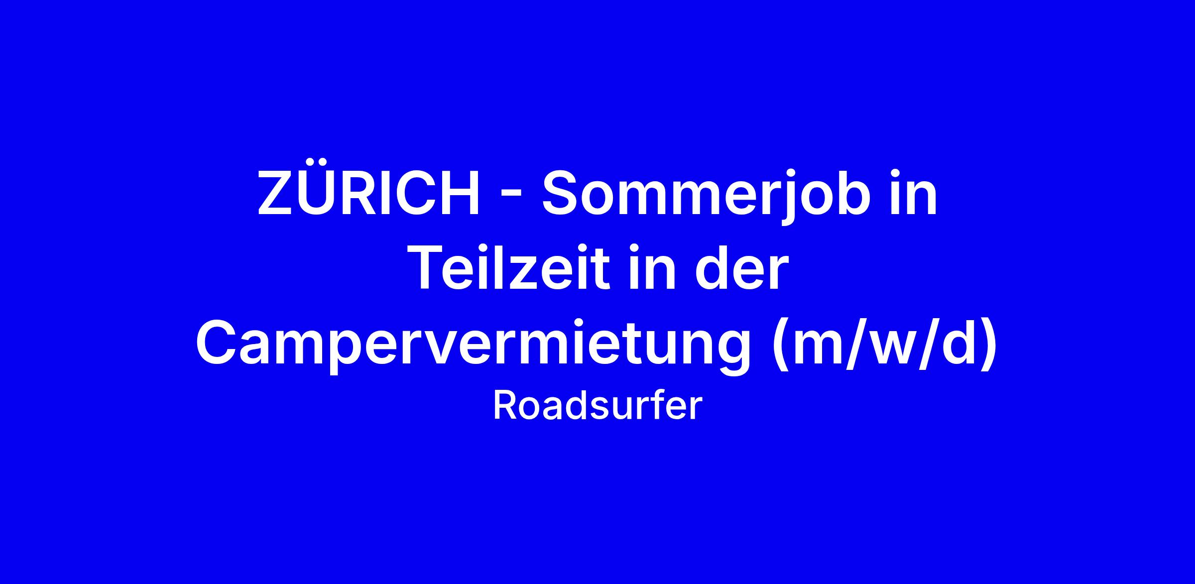 Roadsurfer sucht eine/n Teilzeit-Sommermitarbeiter/in (m/w/d) für die Campervermietung in der Region Zürich/Wetzikon. Deine Aufgaben: Außen- und Innenreinigung der Camper, Unterstützung im Kundenservice bei Abholung und Rückgabe, Mitarbeit im Station Team. Ziel: Unsere Roadsurfer sollen entspannt in den Urlaub starten. Vorteile: flache Hierarchien, regelmäßige Teamevents und Rabatte. Du bringst eine Hands-on-Mentalität, Führerschein Klasse B und gute Deutsch- oder Englischkenntnisse mit. Vertrag: 20 Std/Woche, 30.000 €/Jahr, Einsatztage Mo-Sa 08:00–19:00 nach Verfügbarkeit, Start 01.04.2026 bis 31.10.2026, Ort Grubenstr. 24, 8620 Wetzikon. Bewirb dich über das Bewerbertool, bei Fragen [email protected]. Wir freuen uns auf deine Bewerbung und darauf, dich in unserem dynamischen Team willkommen zu heißen.