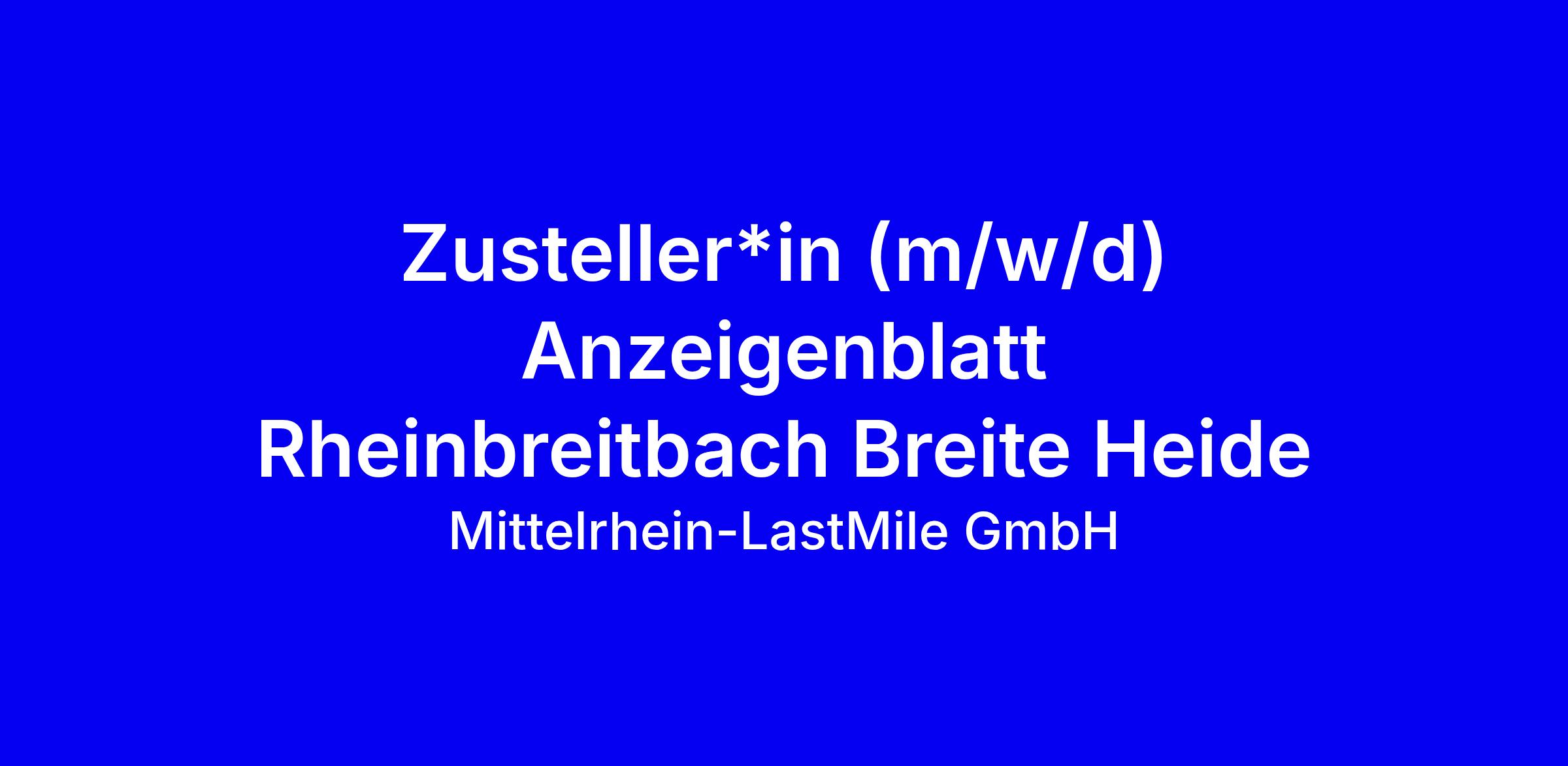 Du sorgst dafür, dass unsere Leser in ihrem Zustellungsgebiet in Rheinbreitbach Breite Heide am Wochenende (Samstag) ihre Zeitung / Werbeprospekte pünktlich erhalten.