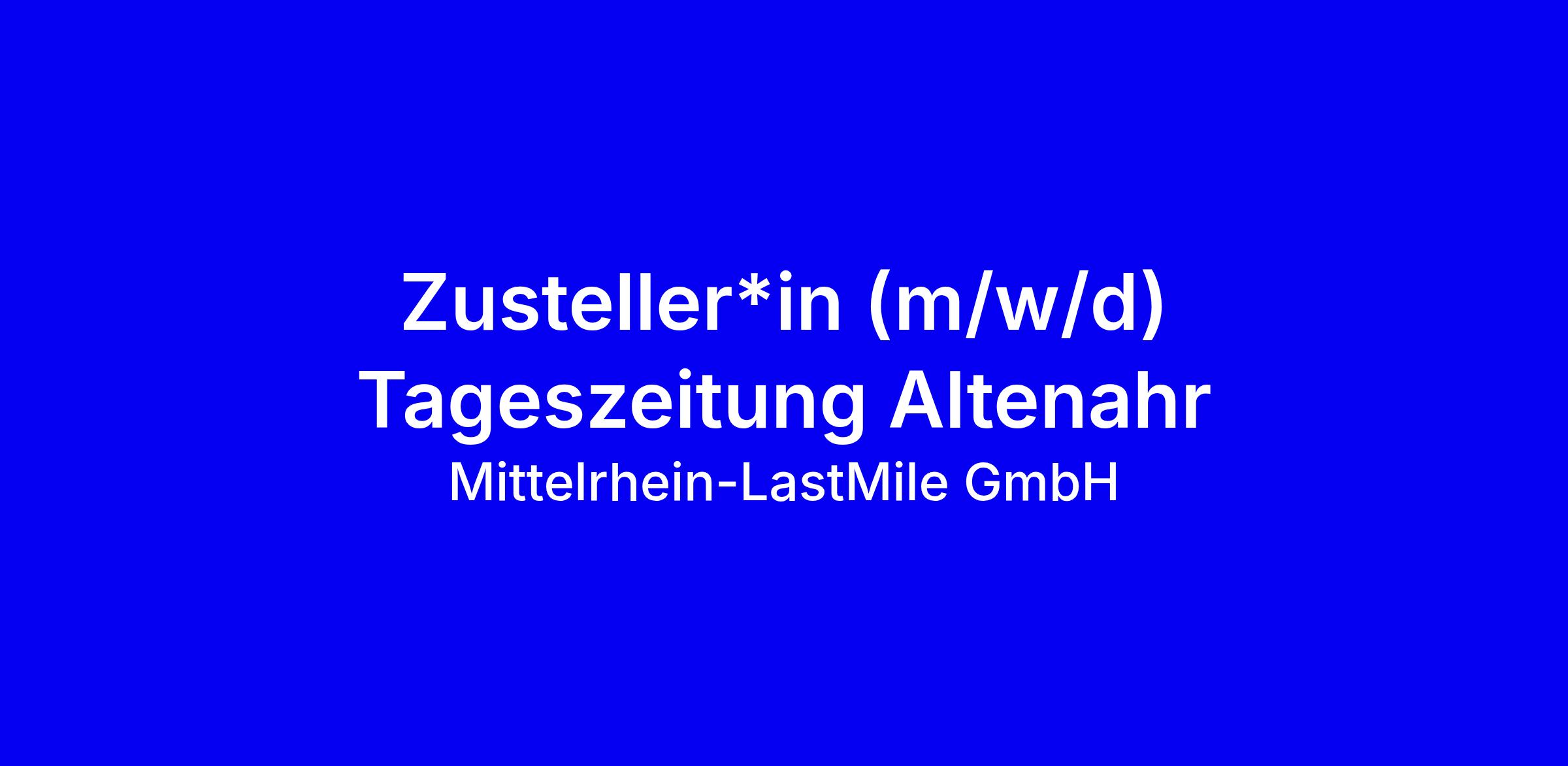 Die Zustellerstelle für die Tageszeitung Altenahr von der Mittelrhein-LastMile GmbH richtet sich an zuverlässige, engagierte Menschen (m/w/d) als krisensicheren Nebenjob oder Minijob. Die Anstellung ist unbefristet und bietet ca. 20 Stunden Teilzeit, mit Zustellung vor 6 Uhr morgens in Ihrem Bezirk. Je nach Wunsch entscheiden Sie, wie viel Zeit Sie investieren, meist 30 Minuten bis 3 Stunden pro Tag. Sie bekommen faire, pünktliche Bezahlung, erhalten Kleidung, Zeitungswagen, Lampe und weitere Ausrüstung, profitieren von einem Bonusprogramm und einer benutzerfreundlichen Zusteller-App. Bewerben Sie sich bequem per WhatsApp über die genannten Jobseiten, starten Sie gemeinsam mit unserem Chat-Bot. QR-Code möglich; Rückmeldung in 3 bis 5 Werktagen. Voraussetzung: zuverlässig, mind. 18 Jahre, Führerschein wünschenswert.